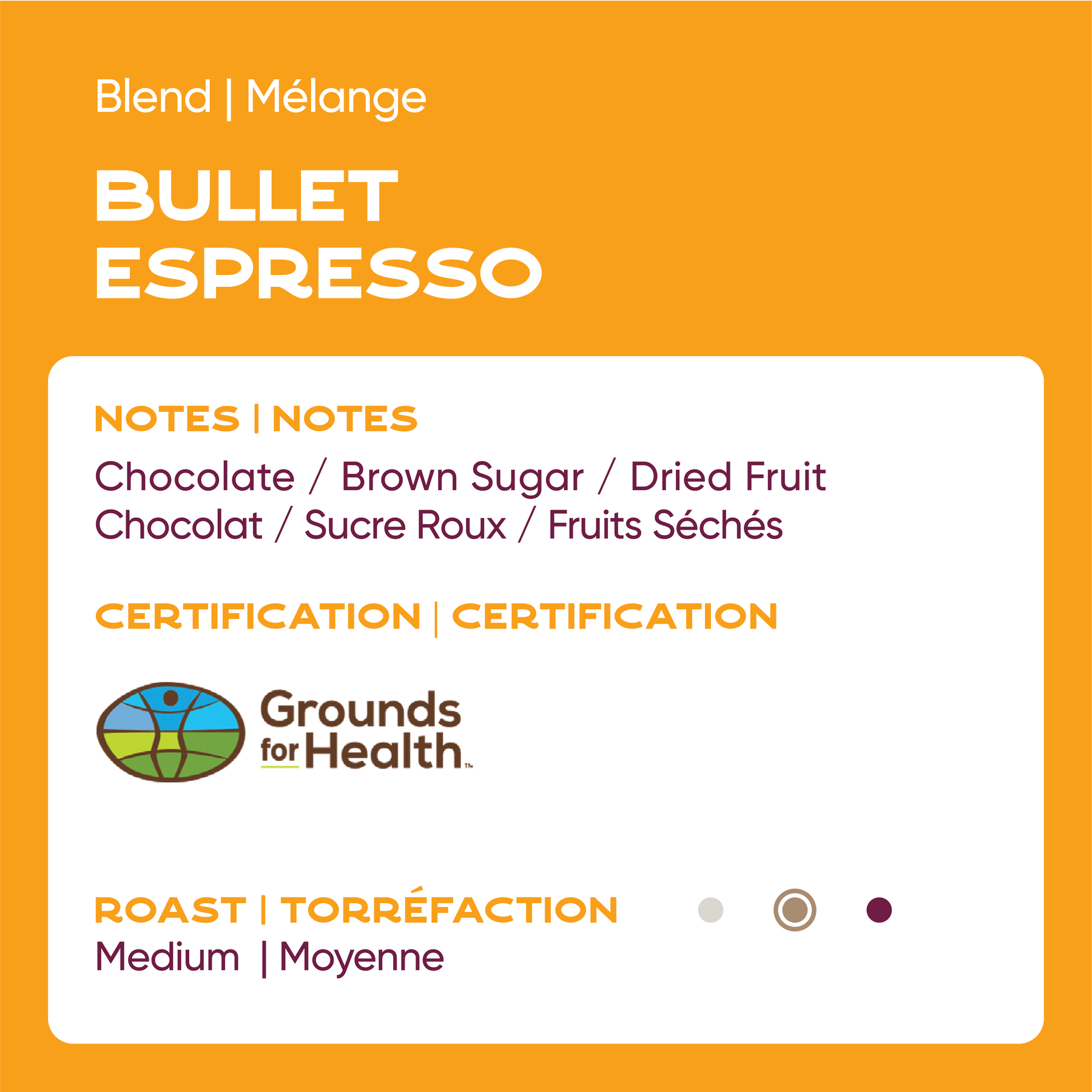 Our signature espresso; this blend of direct trade and sustainably sourced coffees from Brazil and Guatemala is designed to be reliable, consistent, easy to work with and delicious. Sales from Bullet Espresso support Grounds for Health, a non-profit program that deploys cervical cancer screening programs to women in coffee-producing regions.